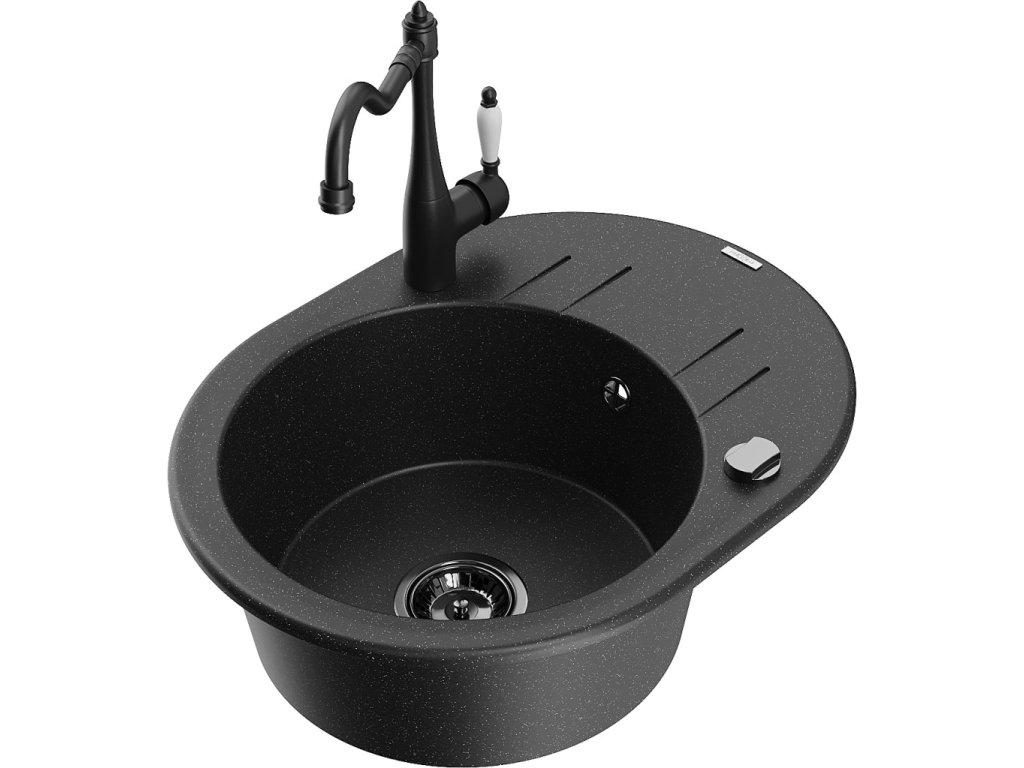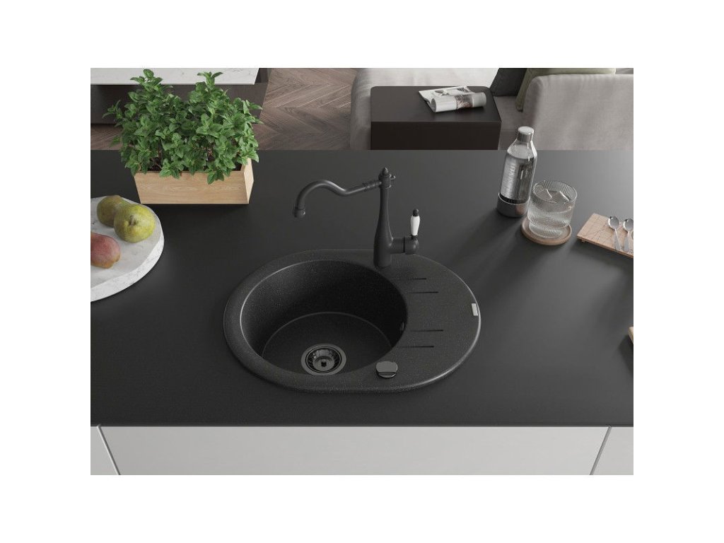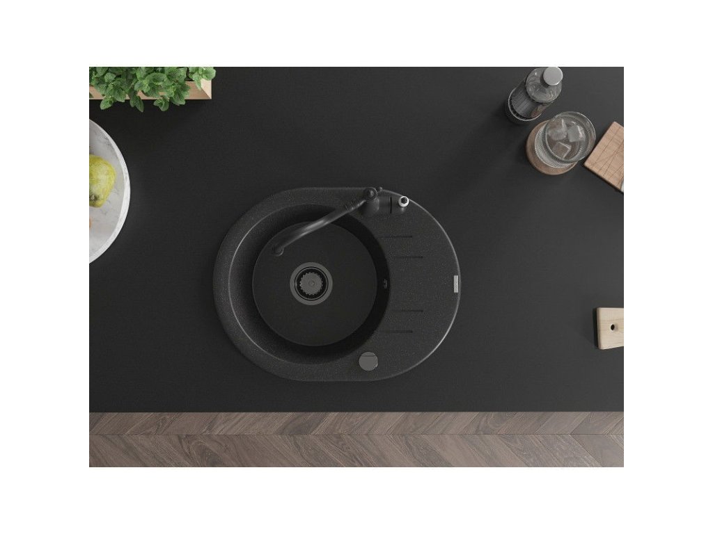 MEXEN/S - Kevin granitový dřez 1-miska s odkapávačem včetně baterie Carla, černá/stříbrná metalik 6517-73-670700-70-B