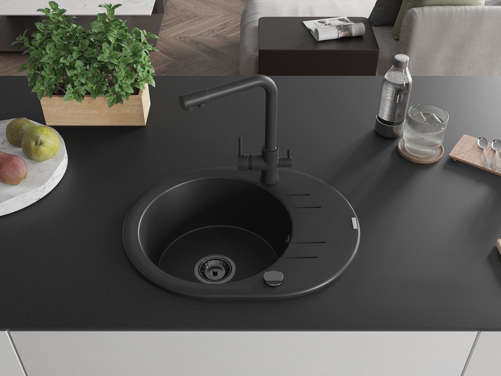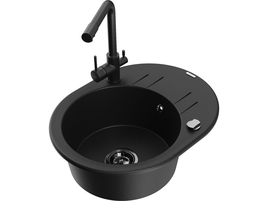 MEXEN/S - Kevin granitový dřez 1-miska s odkapávačem včetně baterie Duero, černá 6517-77-671600-70-B