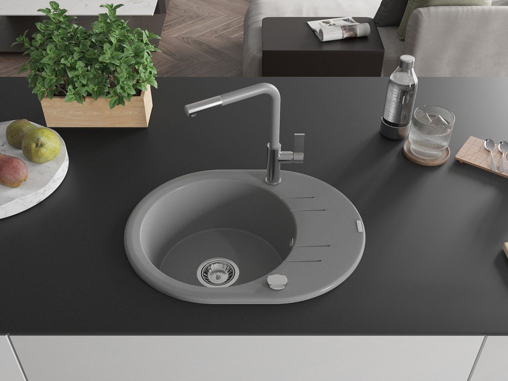 MEXEN/S - Kevin granitový dřez 1-miska s odkapávačem včetně baterie Flora, šedá 6517-71-670401-06