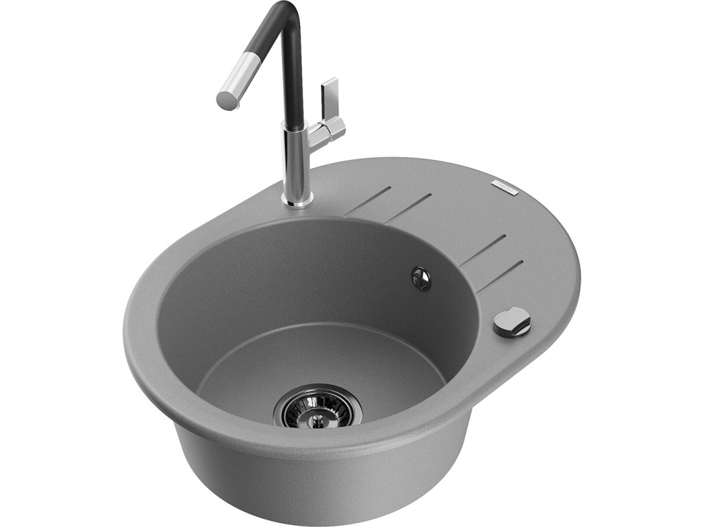 MEXEN/S - Kevin granitový dřez 1-miska s odkapávačem včetně baterie Flora, šedá 6517-71-670401-07-B