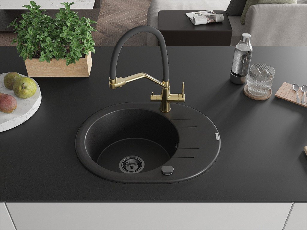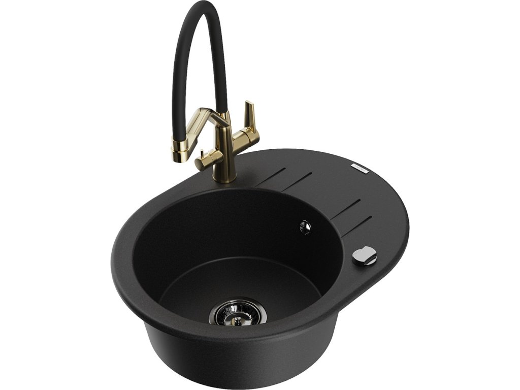 MEXEN/S - Kevin granitový dřez 1-miska včetně baterie Duo, černá 6517-77-671701-57-B