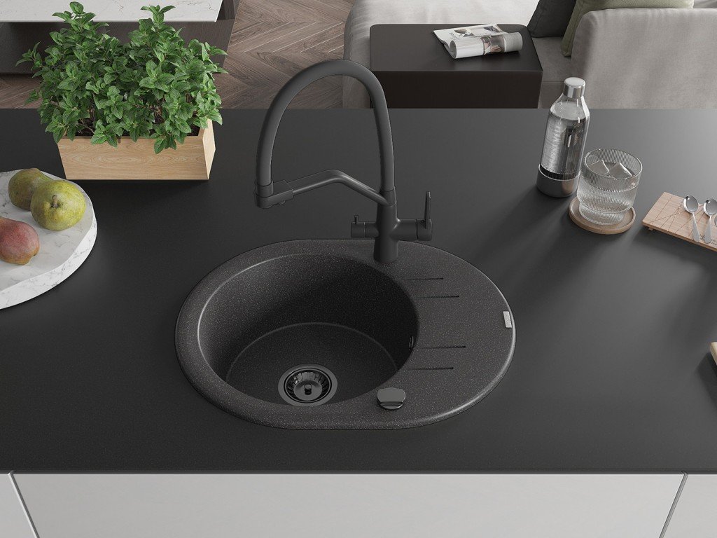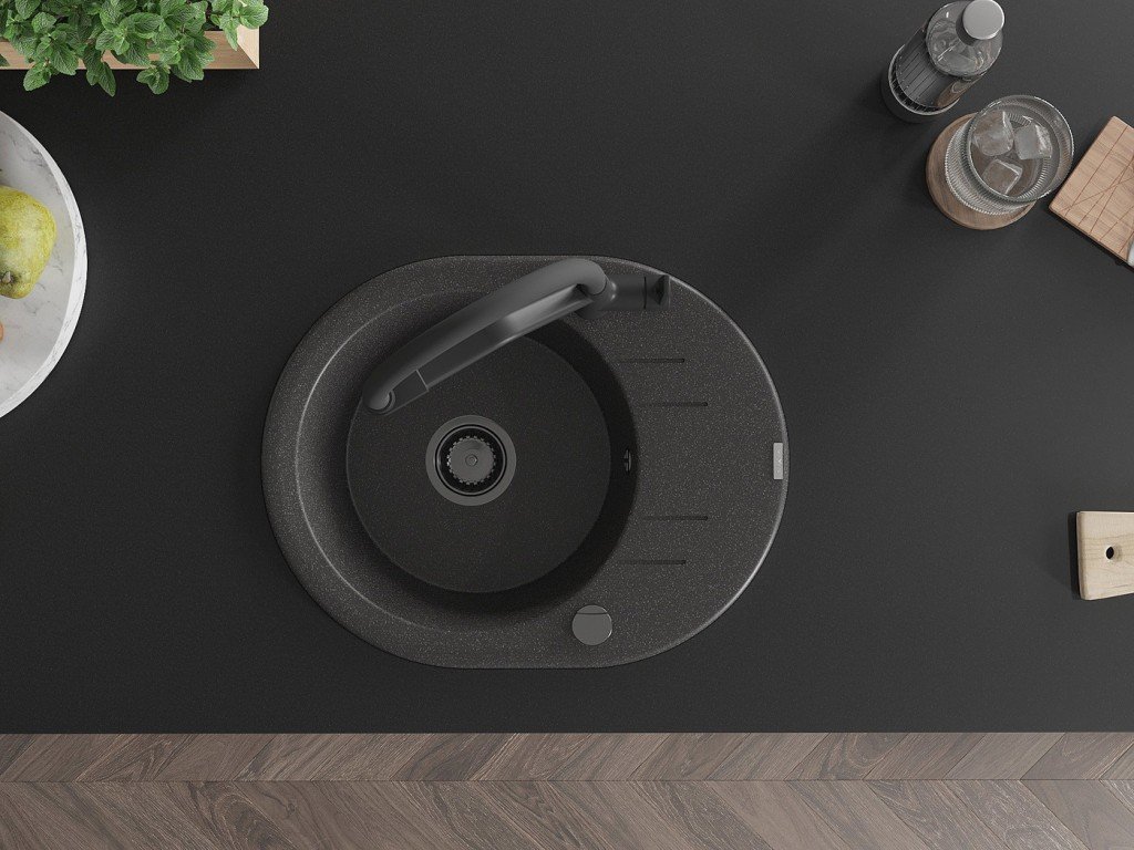 Kuchyňský granitový dřez odolný vůdči poškrábání, teplotním šokům a nárazům. Směs přírodní pryskyřice a hustého granitu.