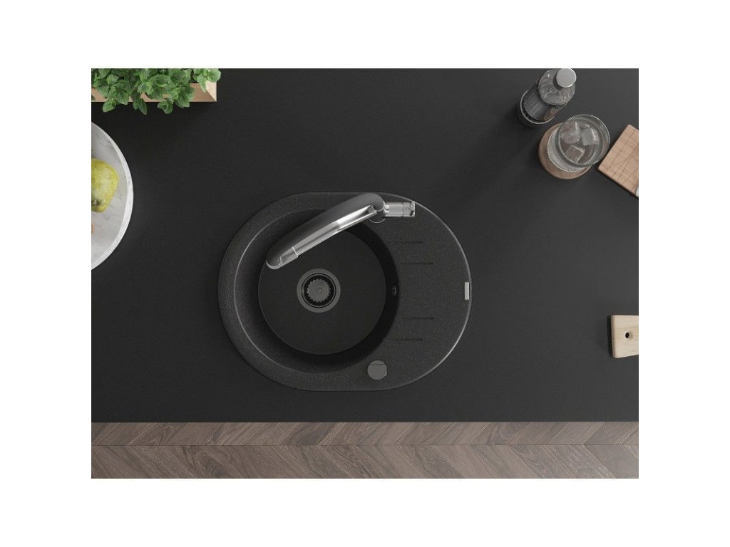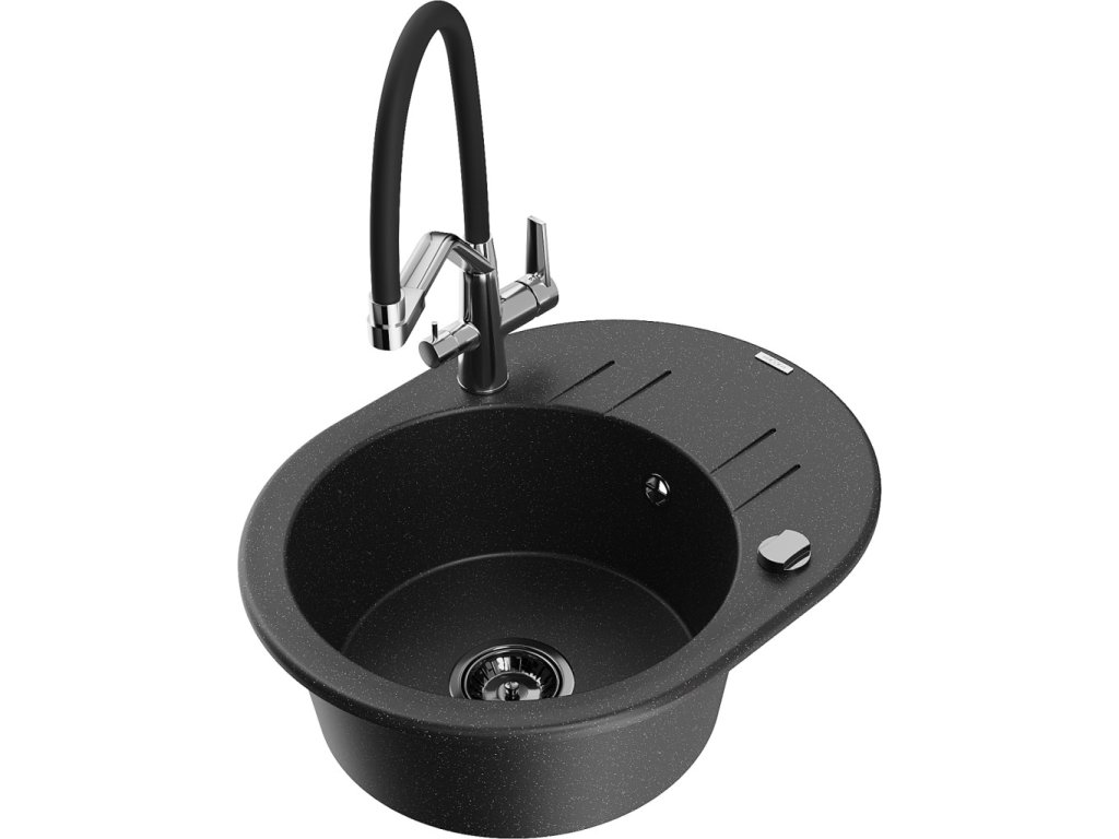 MEXEN/S - Kevin granitový dřez 1-miska včetně baterie Duo, černá/stříbrná metalik 6517-73-671701-07-B