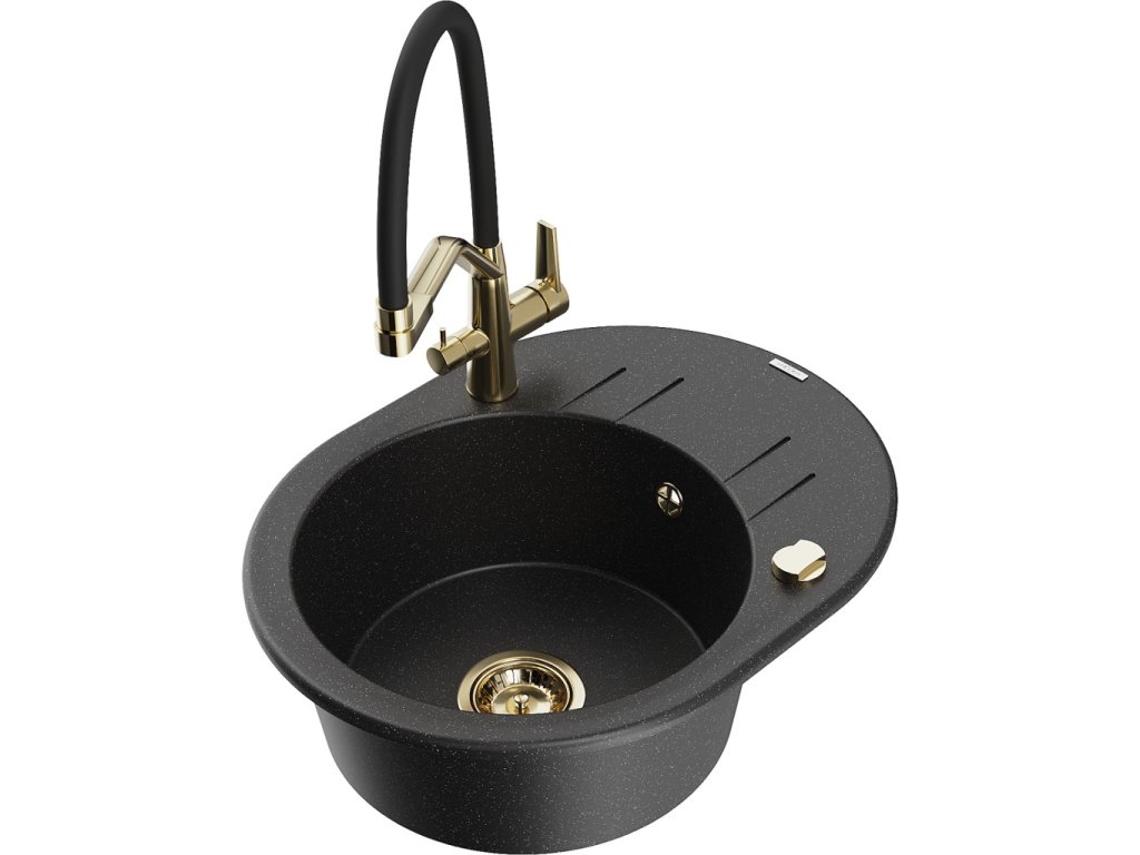 MEXEN/S - Kevin granitový dřez 1-miska včetně baterie Duo, černá/stříbrná metalik 6517-73-671701-57-G