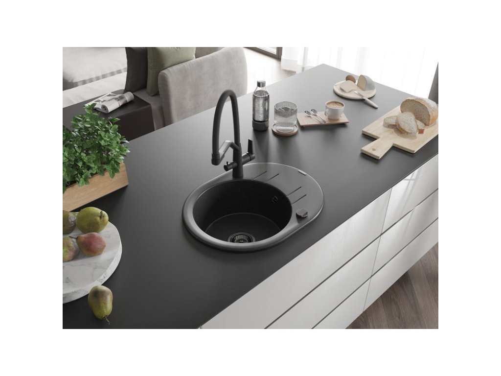 MEXEN/S - Kevin granitový dřez 1-miska včetně baterie Duo, černá/stříbrná metalik 6517-73-671701-70-B