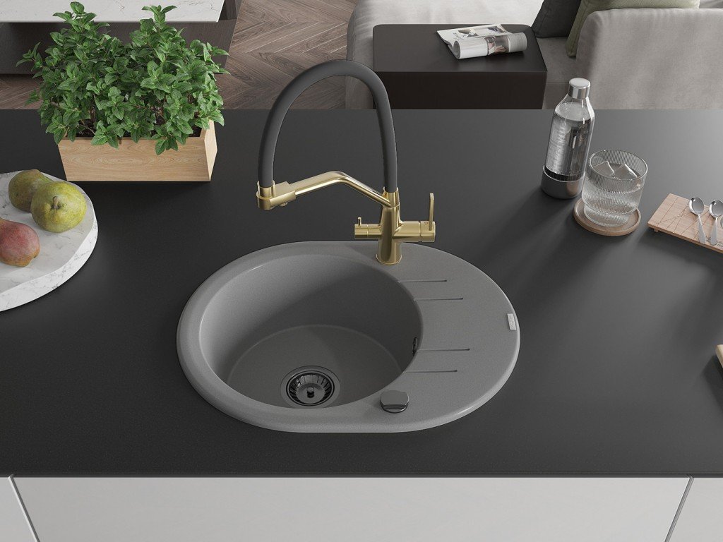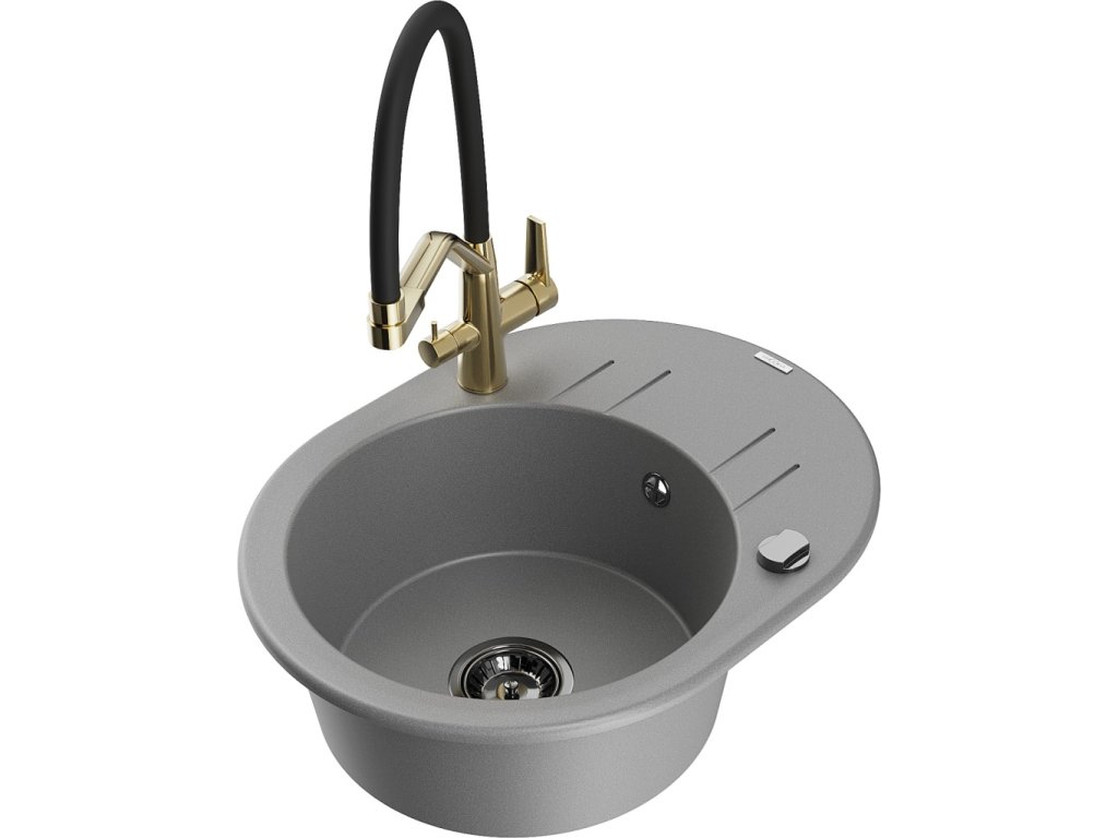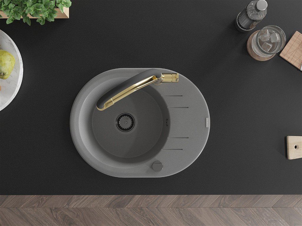 MEXEN/S - Kevin granitový dřez 1-miska včetně baterie Duo, šedá 6517-71-671701-57-B
