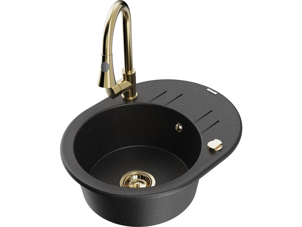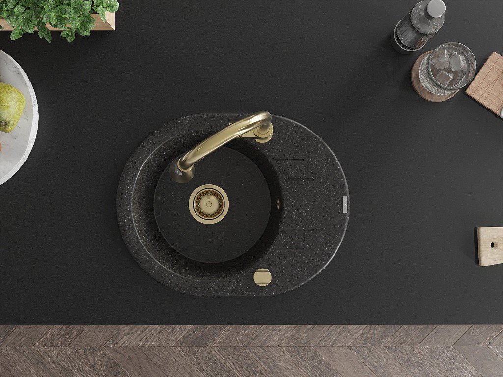 MEXEN/S - Kevin granitový dřez 1 s odkapávačem včetně baterie Elia, černá/stříbrná metalik 6517-73-670101-50