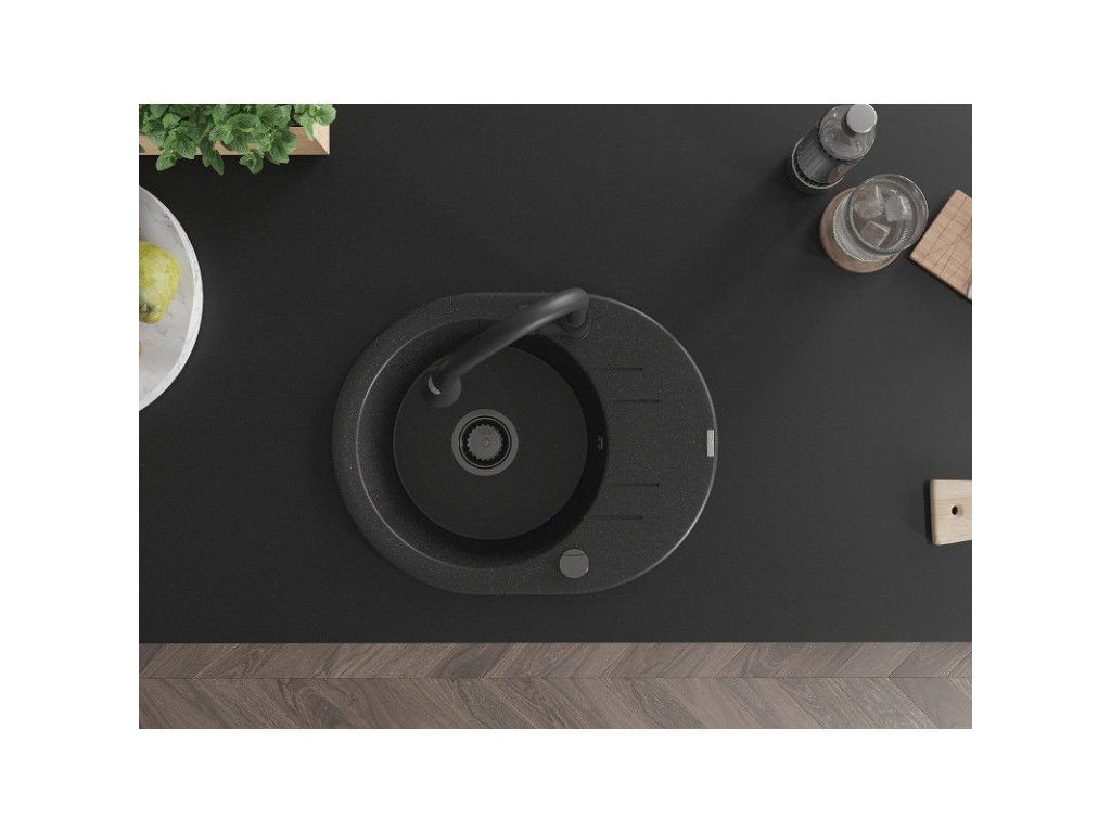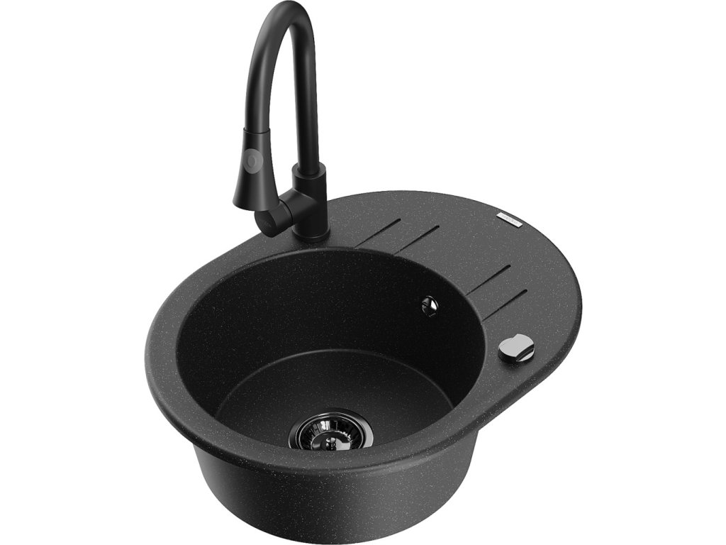 MEXEN/S - Kevin granitový dřez 1 s odkapávačem včetně baterie Elia, černá/stříbrná metalik 6517-73-670101-70-B