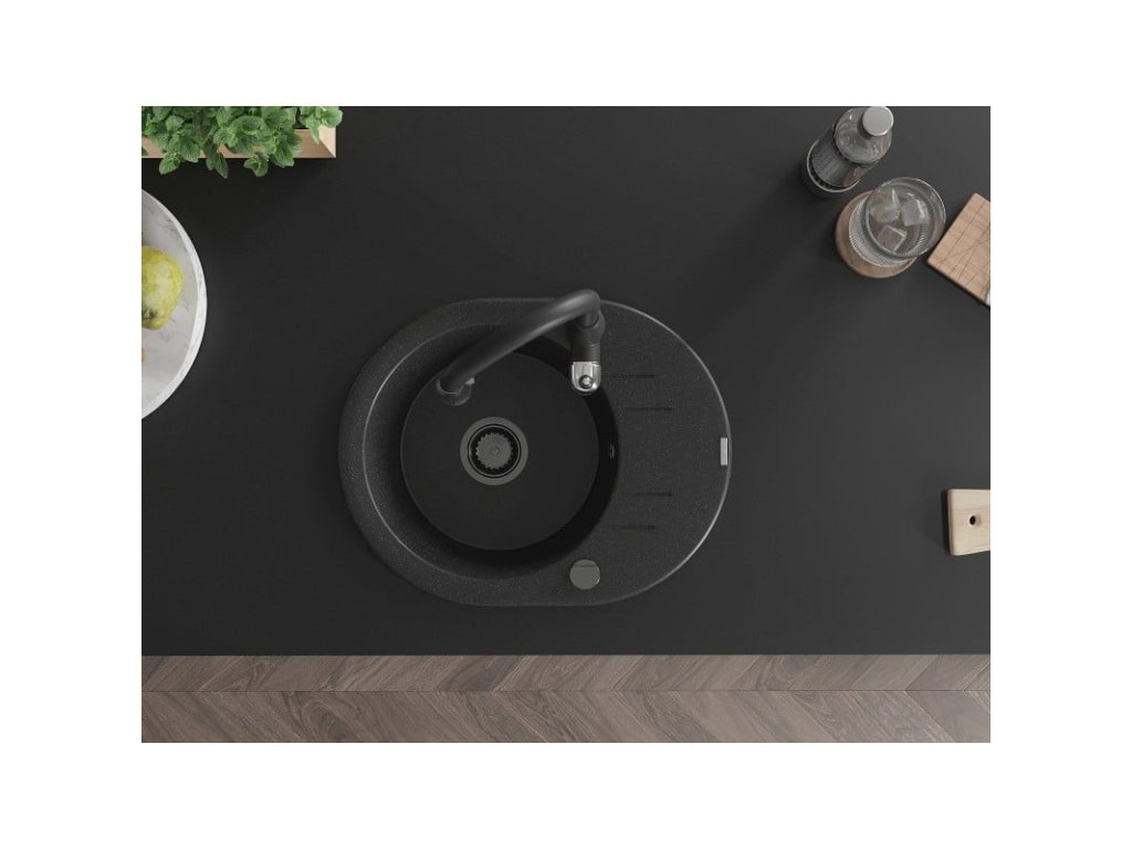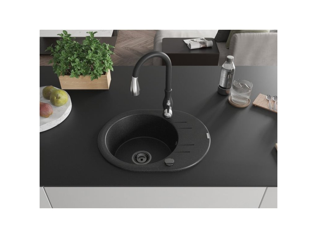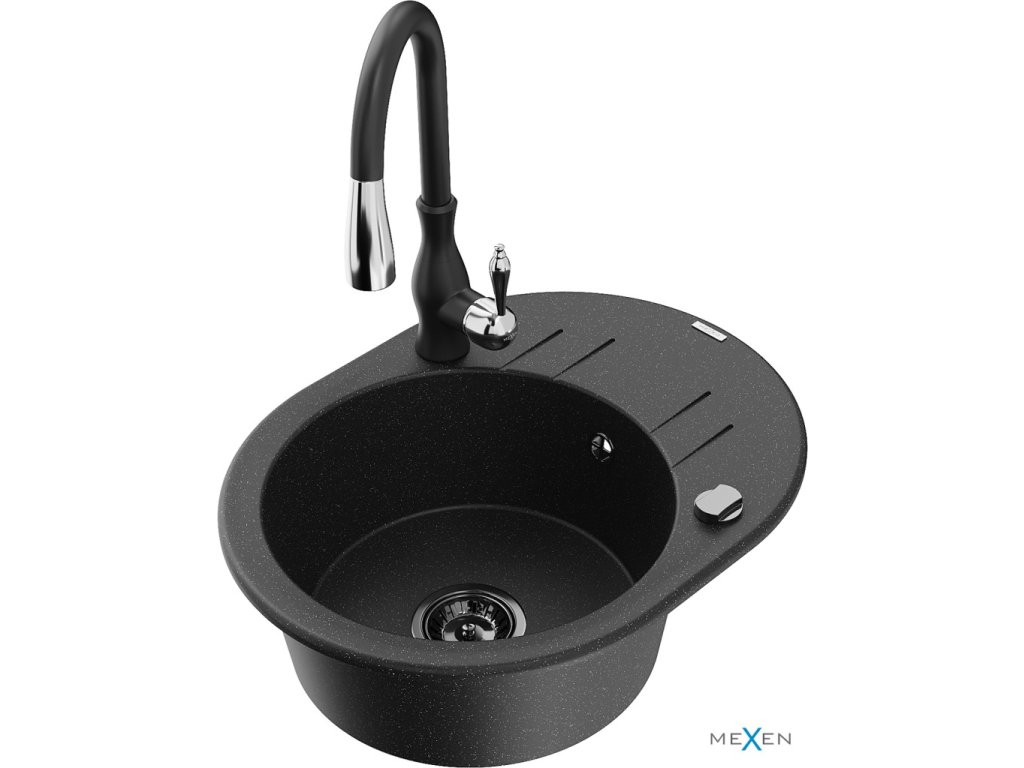 MEXEN/S - Kevin granitový dřez 1 s odkapávačem včetně baterie Savita, černá/stříbrná 6517-73-672601-70-B