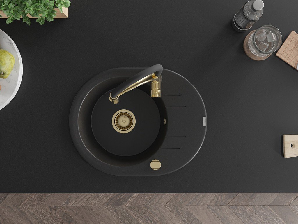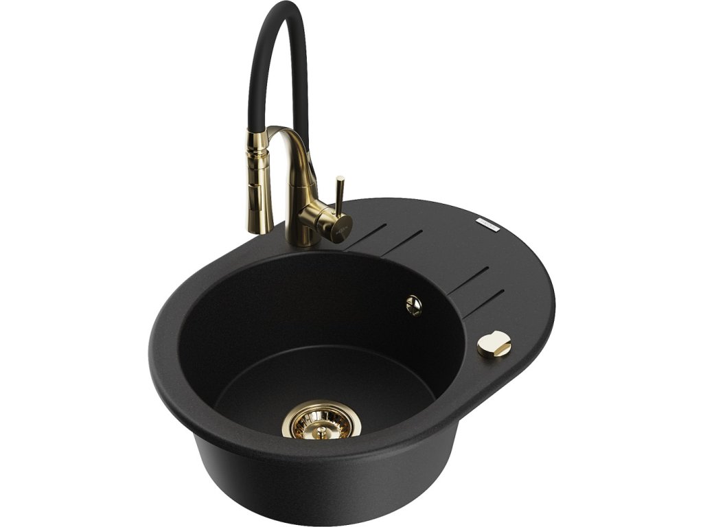 MEXEN/S - Kevin granitový dřez s odkapávačem včetně baterie Aster, černá 6517-77-73450-57-G