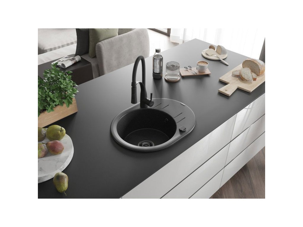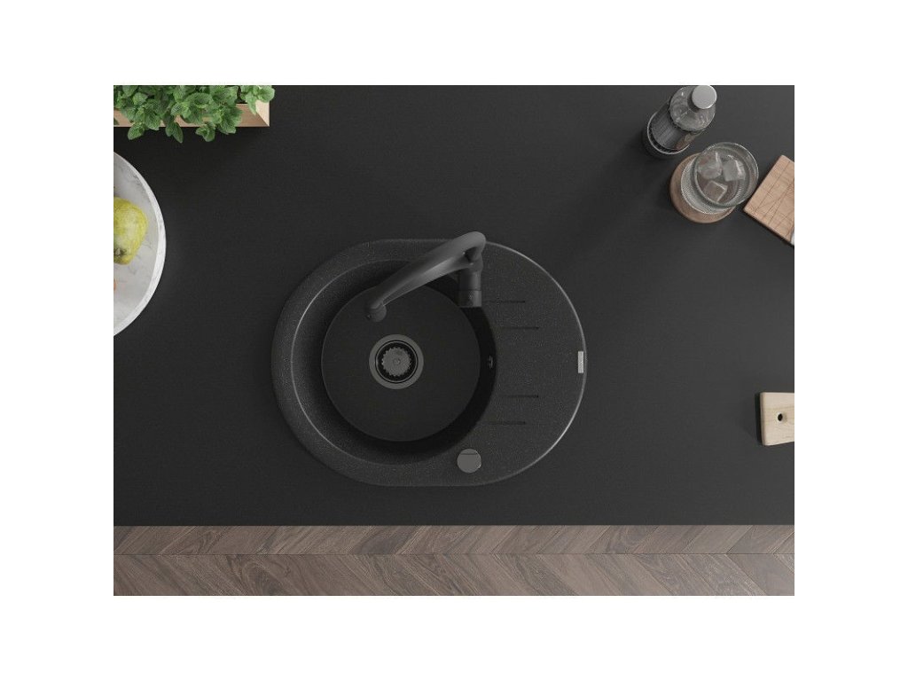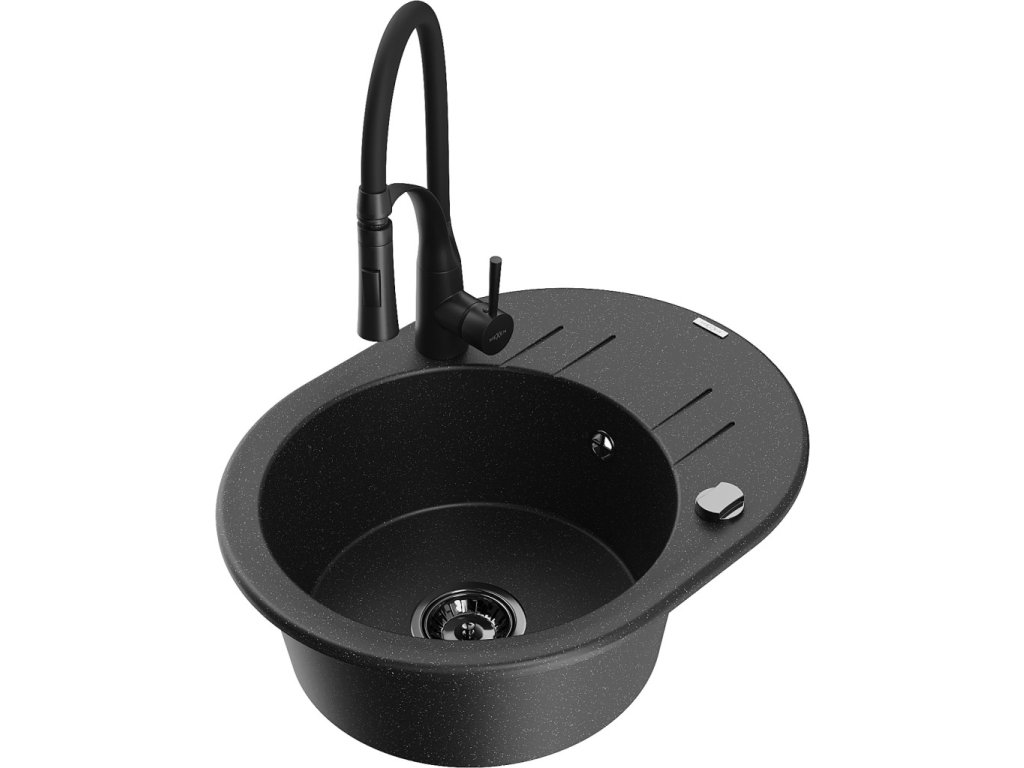 MEXEN/S - Kevin granitový dřez s odkapávačem včetně baterie Aster, černá/stříbrná metalik 6517-73-73450-70-B