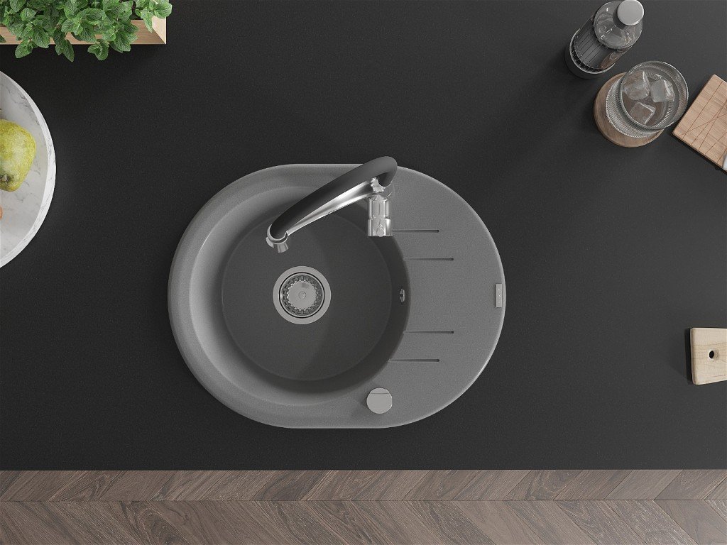 MEXEN/S - Kevin granitový dřez s odkapávačem včetně baterie Aster, šedá 6517-71-73450-07