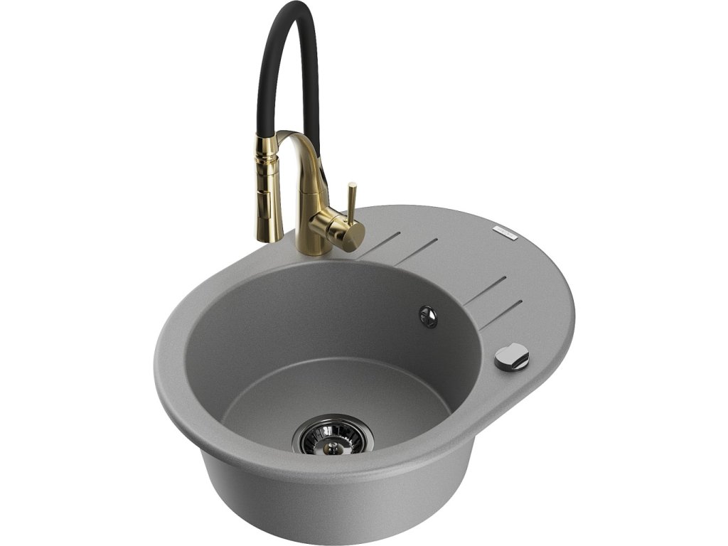 MEXEN/S - Kevin granitový dřez s odkapávačem včetně baterie Aster, šedá 6517-71-73450-57-B