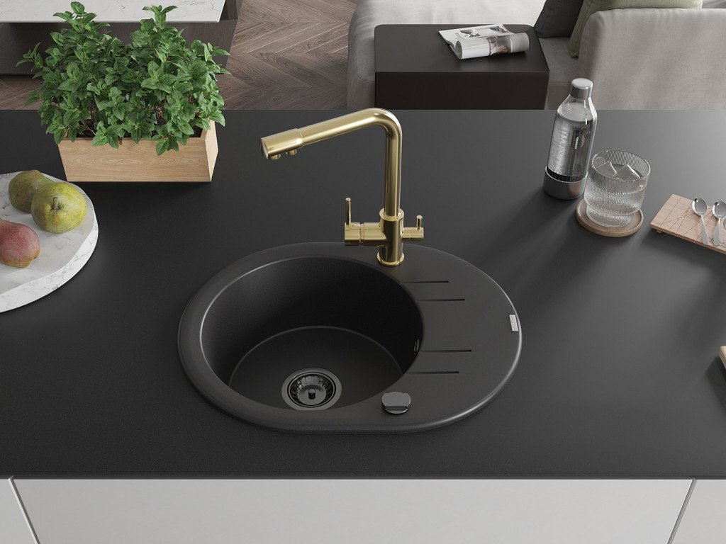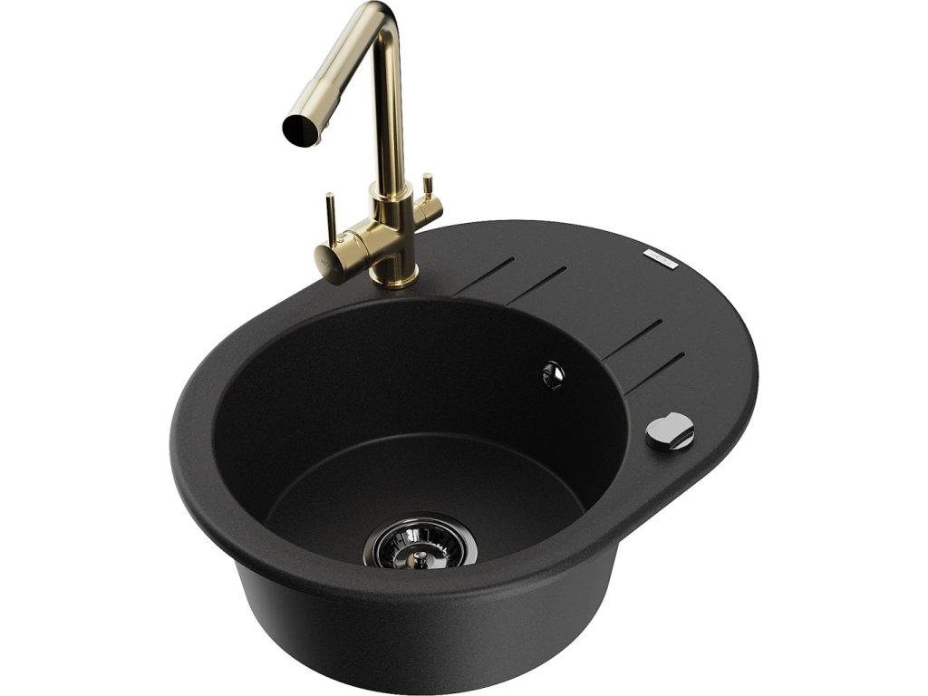 MEXEN/S - Kevin granitový dřez s odkapávačem včetně baterie Duero, černá 6517-77-671600-50-B