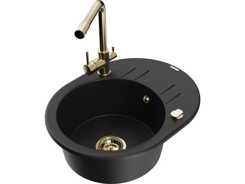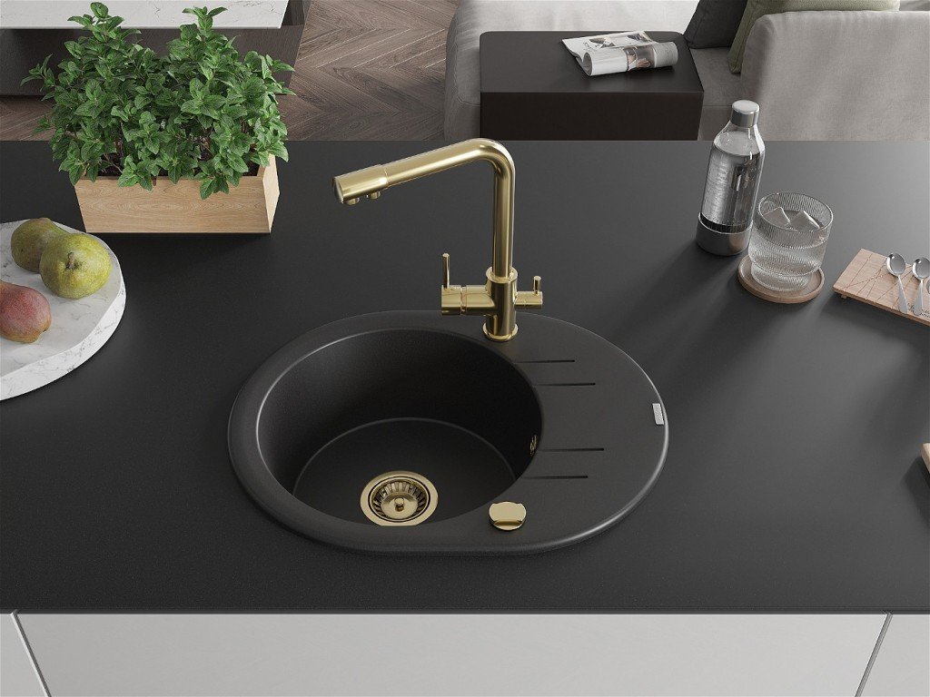 MEXEN/S - Kevin granitový dřez s odkapávačem včetně baterie Duero, černá 6517-77-671600-50