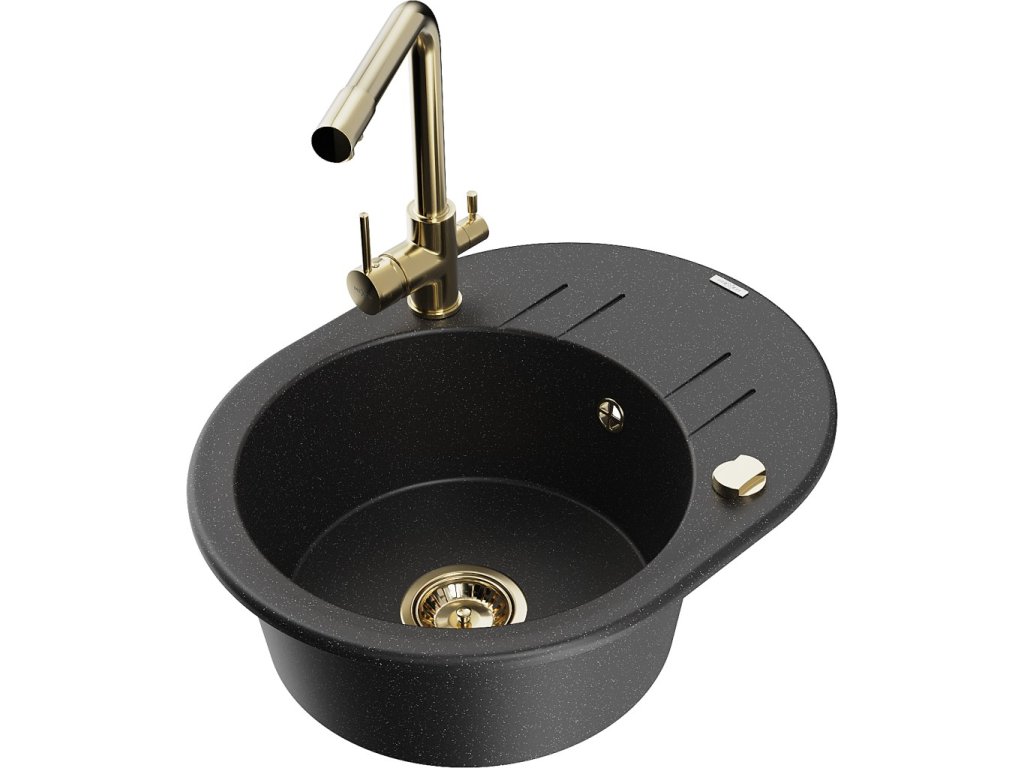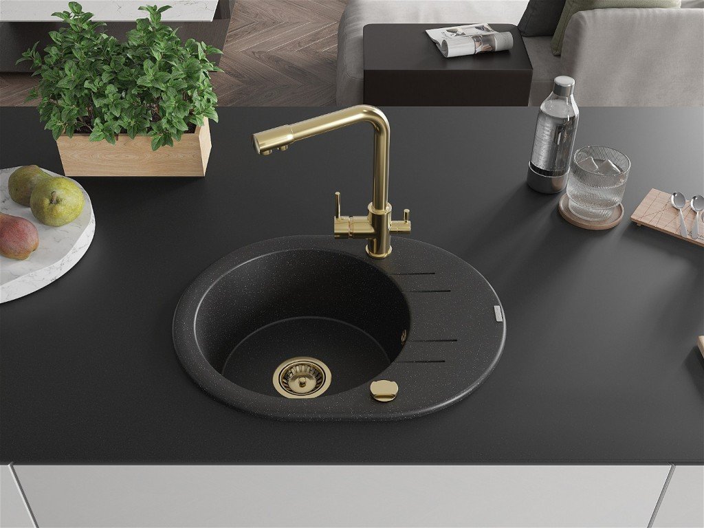 MEXEN/S - Kevin granitový dřez s odkapávačem včetně baterie Duero, černá/srebrny metalik 6517-73-671600-50