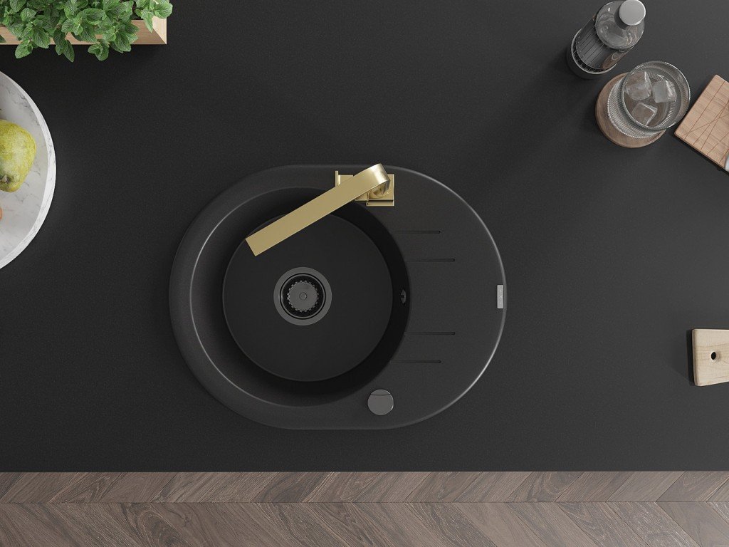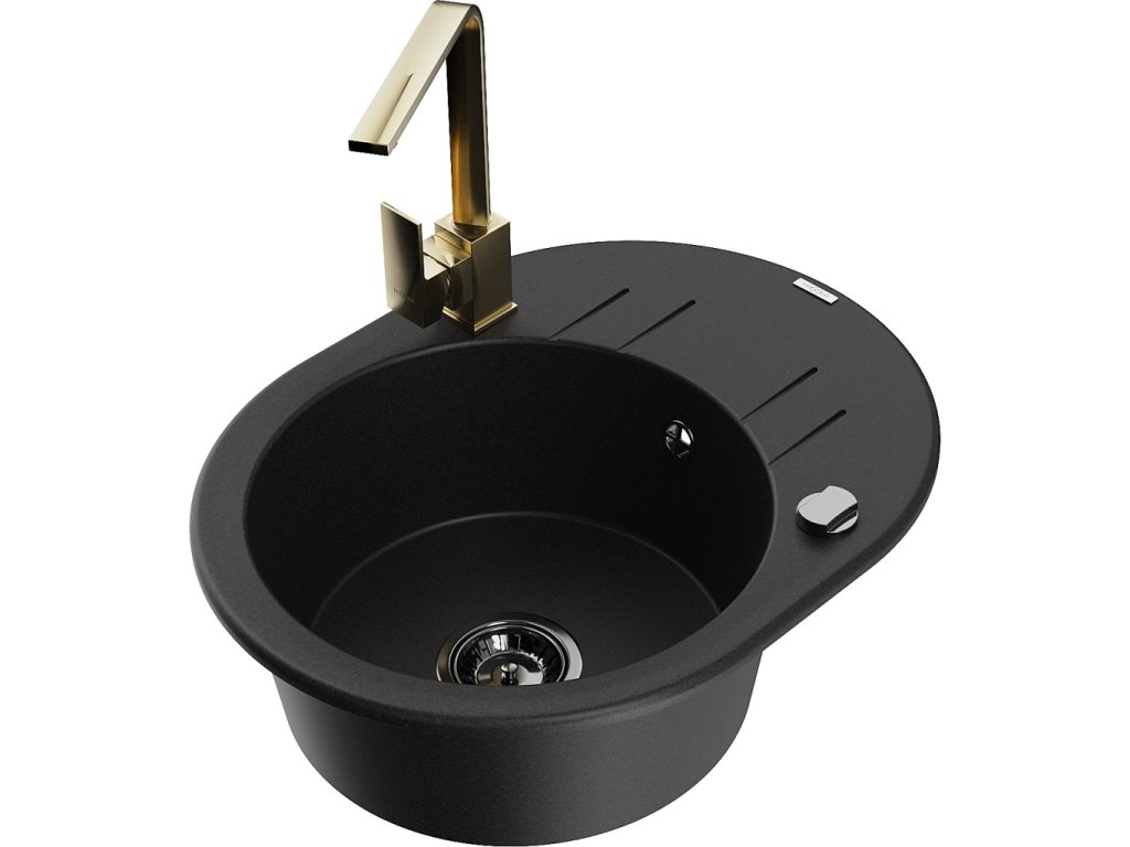MEXEN/S - Kevin granitový dřez s odkapávačem včetně baterie Rita, černá 6517-77-670300-50-B