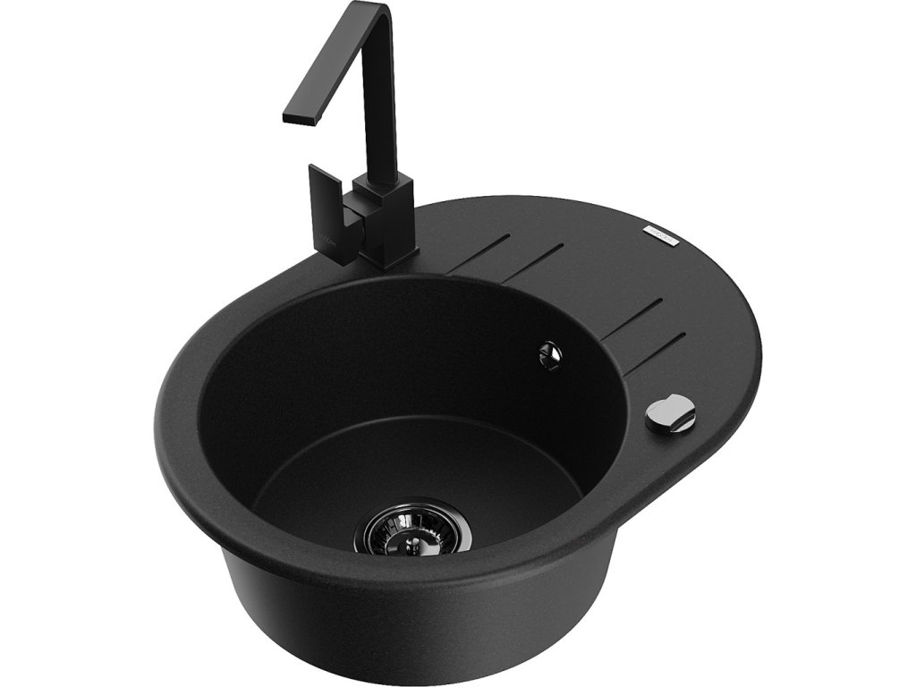 MEXEN/S - Kevin granitový dřez s odkapávačem včetně baterie Rita, černá 6517-77-670300-70-B