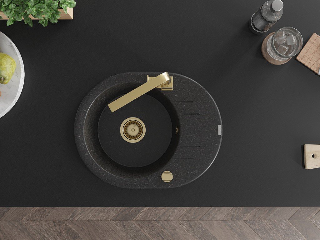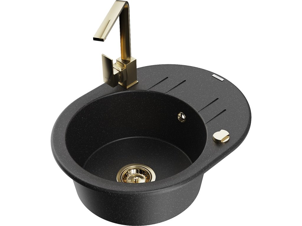 MEXEN/S - Kevin granitový dřez s odkapávačem včetně baterie Rita, černá/stříbrná 6517-73-670300-50
