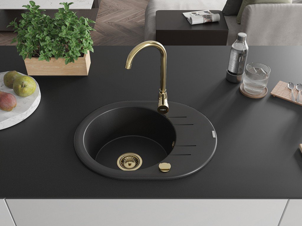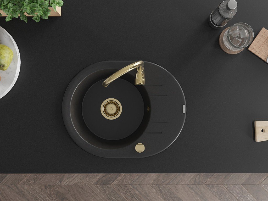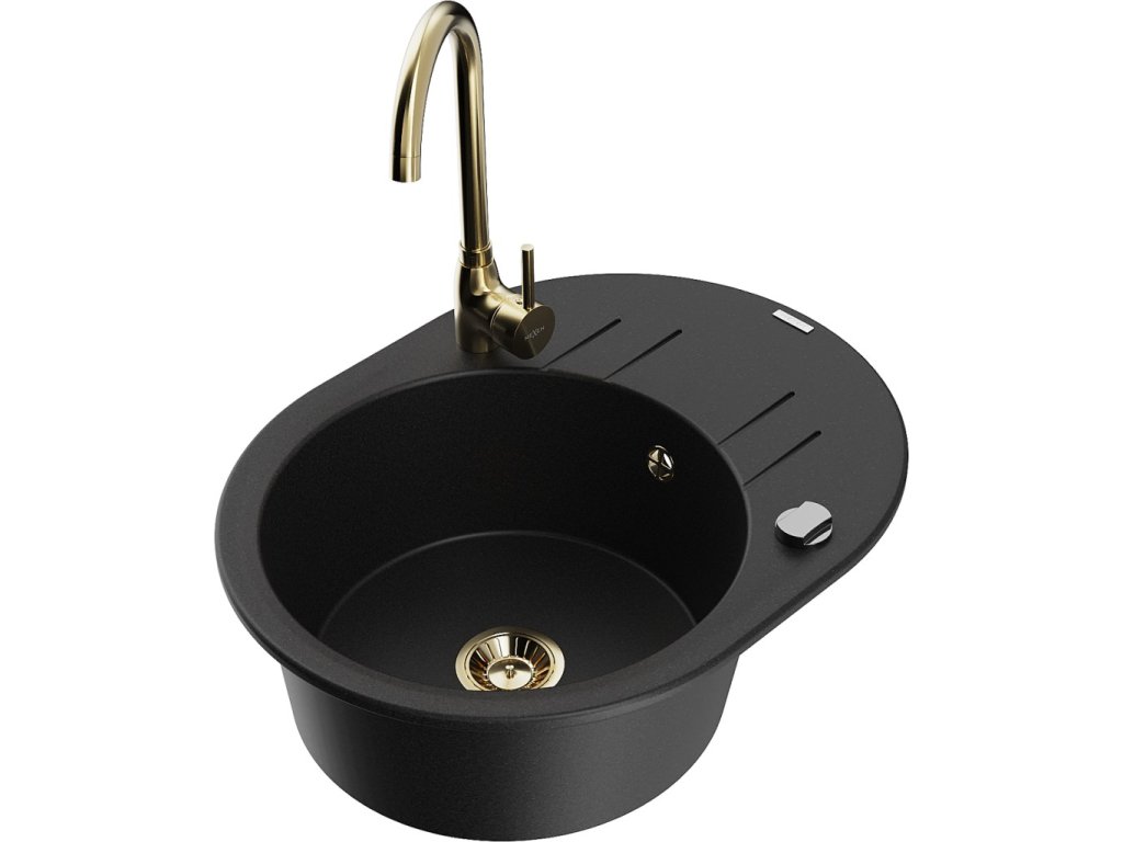 MEXEN/S - Kevin granitový dřez s odkapávačem včetně baterie Telma, černá 6517-77-670200-50