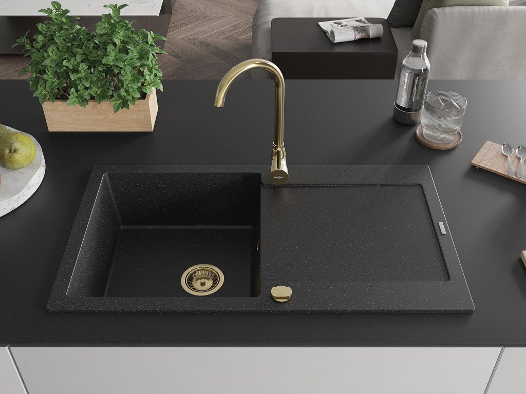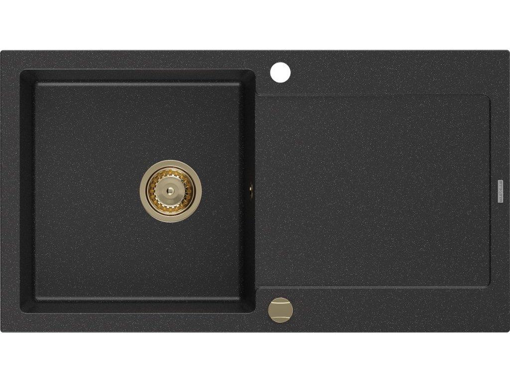 MEXEN/S - Leo granitový dřez 1-miska s odkapávačem 900 x 500 mm, černá/stříbrná 6501901010-73-G
