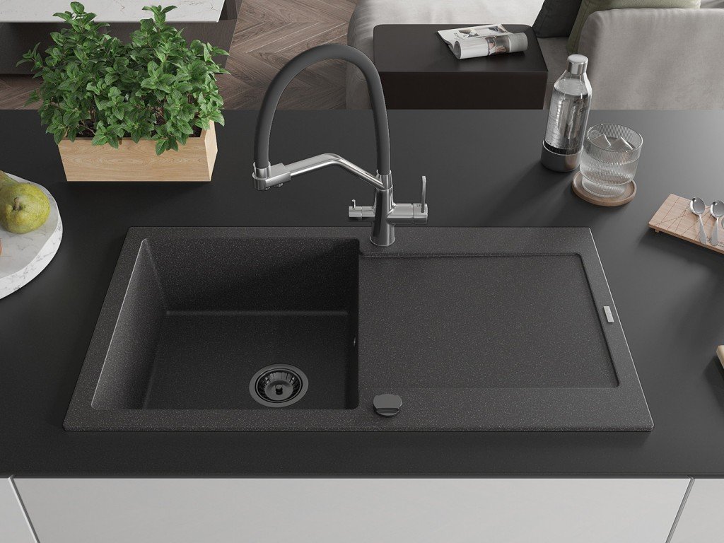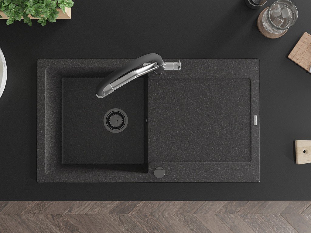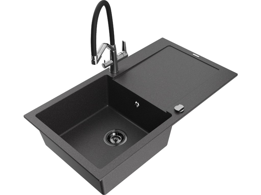 MEXEN/S - Leo granitový dřez 1-miska s odkapávačem včetně baterie Duo, černá kropenatá 6501-76-671701-07-B