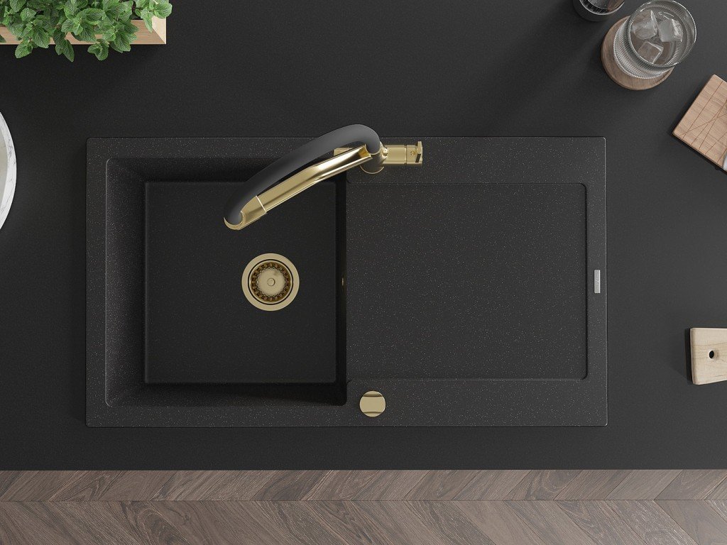 MEXEN/S - Leo granitový dřez 1-miska s odkapávačem včetně baterie Duo, černá/stříbrná metalik 6501-73-671701-57-G