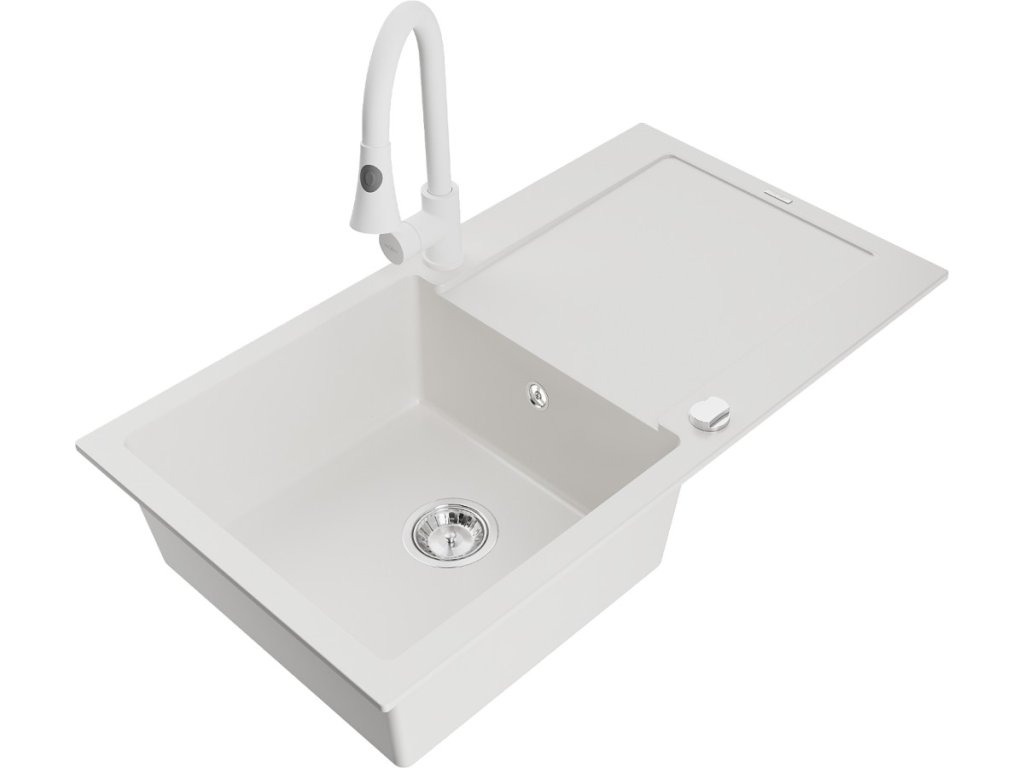 MEXEN/S - Leo granitový dřez 1-miska s odkapávačem včetně baterie Elia, bílá 6501-20-670101-20