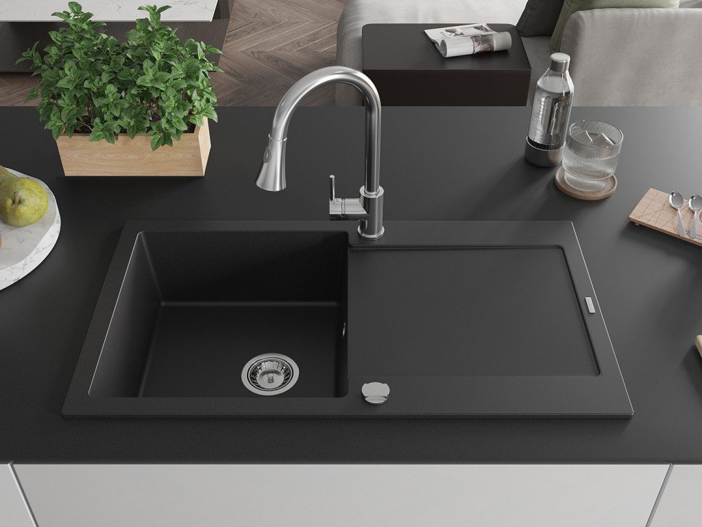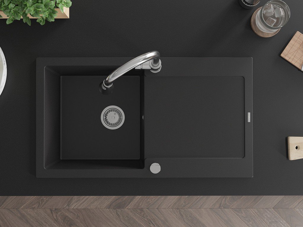 MEXEN/S - Leo granitový dřez 1-miska s odkapávačem včetně baterie Elia, černá 6501-77-670101-00