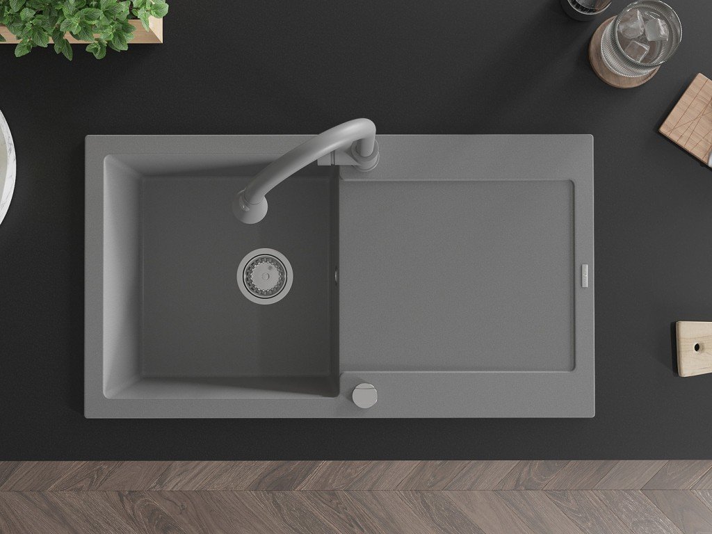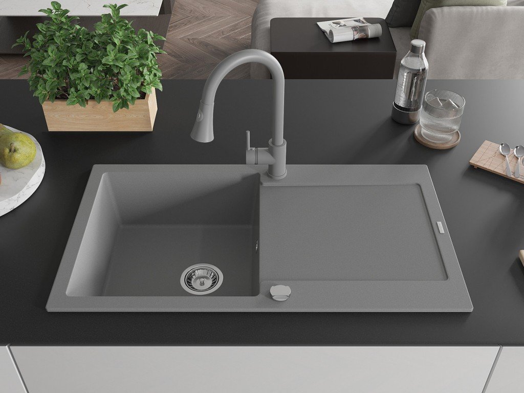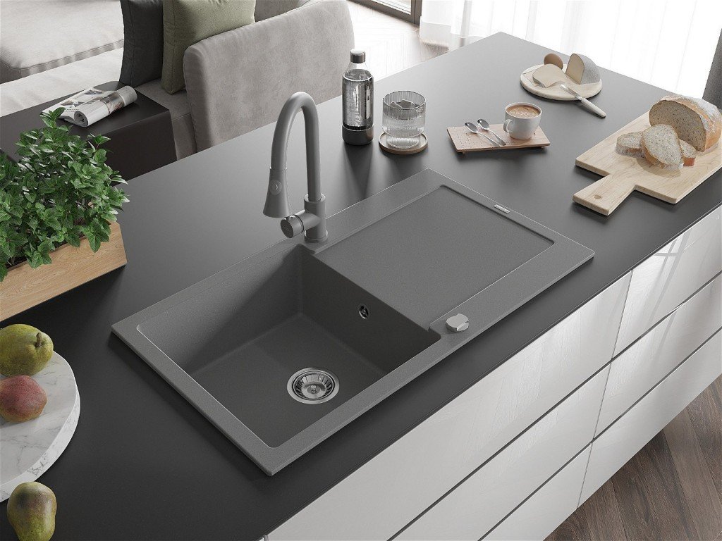 MEXEN/S - Leo granitový dřez 1-miska s odkapávačem včetně baterie Elia, šedá 6501-71-670101-71