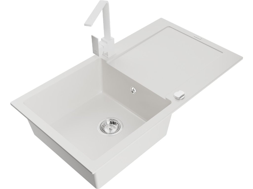 MEXEN/S - Leo granitový dřez 1-miska s odkapávačem včetně baterie Rita, bílá 6501-20-670300-20
