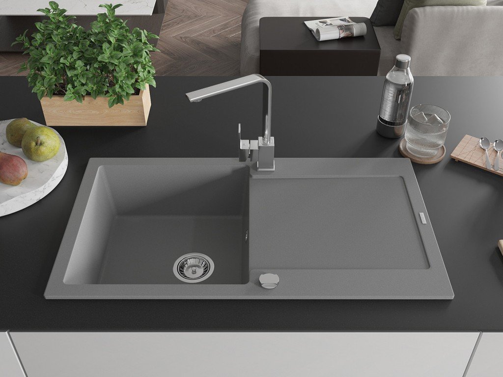 MEXEN/S - Leo granitový dřez 1-miska s odkapávačem včetně baterie Rita, šedý 6501-71-670300-00
