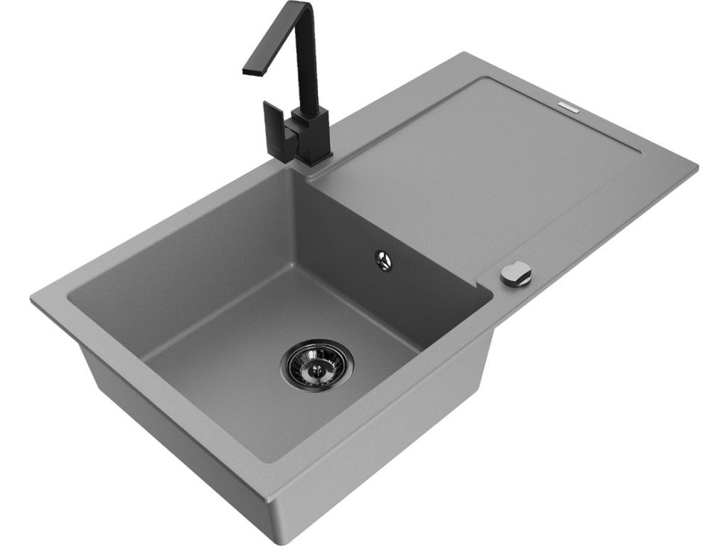 MEXEN/S - Leo granitový dřez 1-miska s odkapávačem včetně baterie Rita, šedý 6501-71-670300-70-B