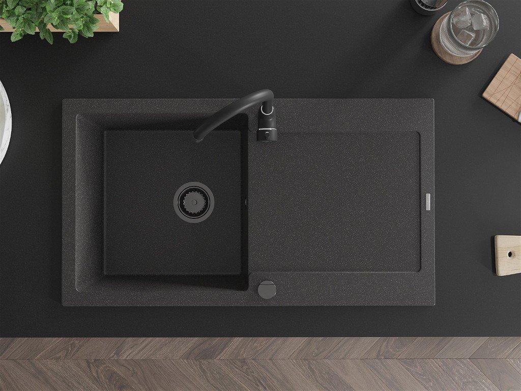 MEXEN/S - Leo granitový dřez 1 s odkapávačem 900x500 mm, černá kropenatá,+ sifon grafit 6501901010-76-B