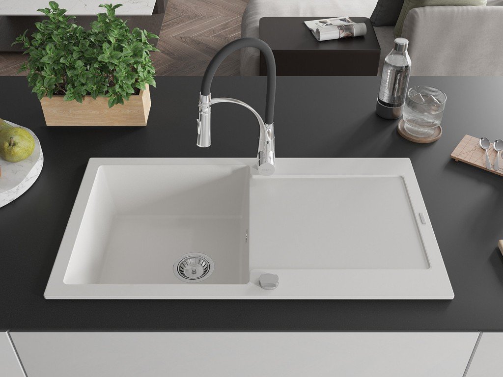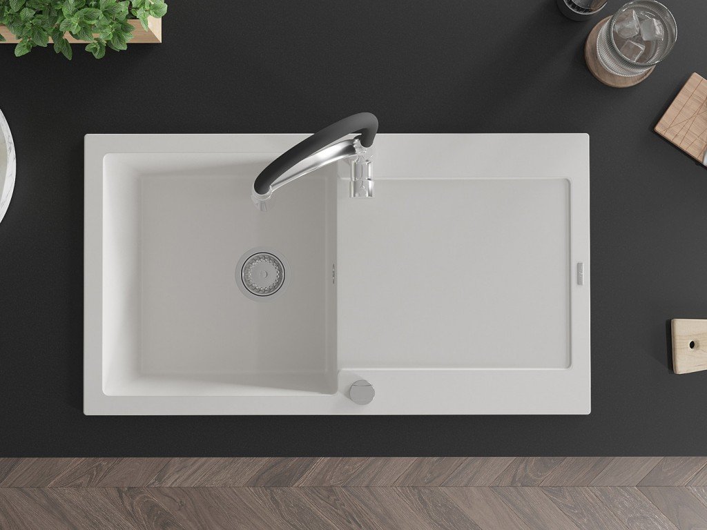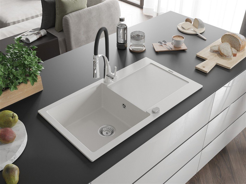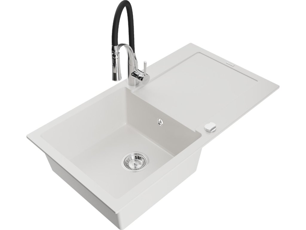 MEXEN/S - Leo granitový dřez 1 s odkapávačem včetně baterie Aster, bílá 6501-20-73450-07