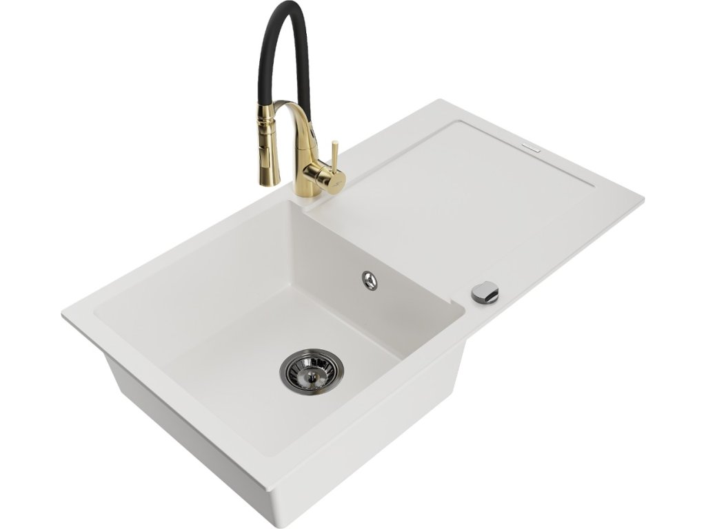 MEXEN/S - Leo granitový dřez 1 s odkapávačem včetně baterie Aster, bílá 6501-20-73450-57-B