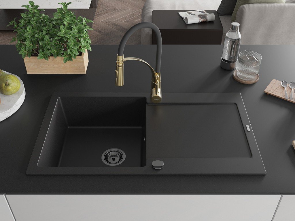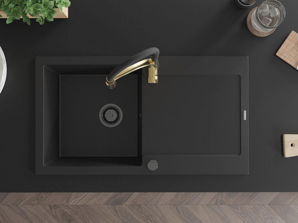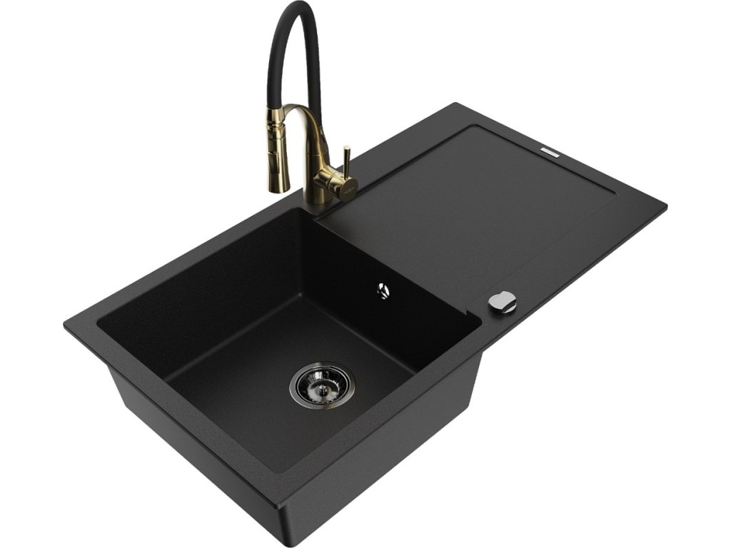 MEXEN/S - Leo granitový dřez 1 s odkapávačem včetně baterie Aster, černá 6501-77-73450-57-B
