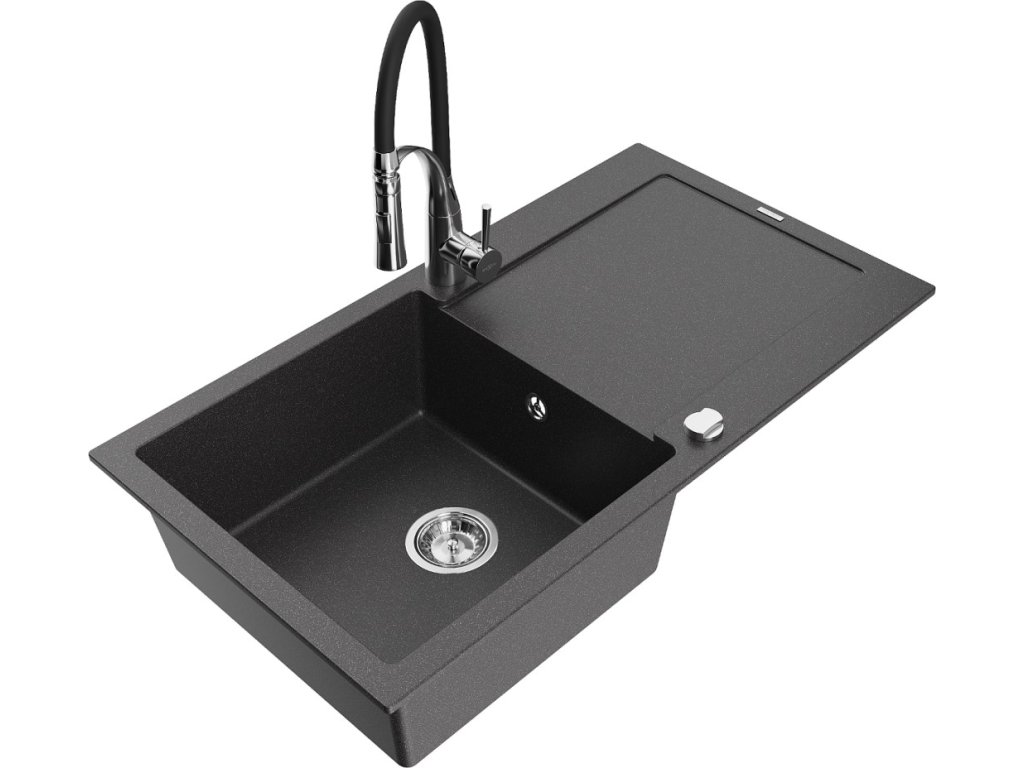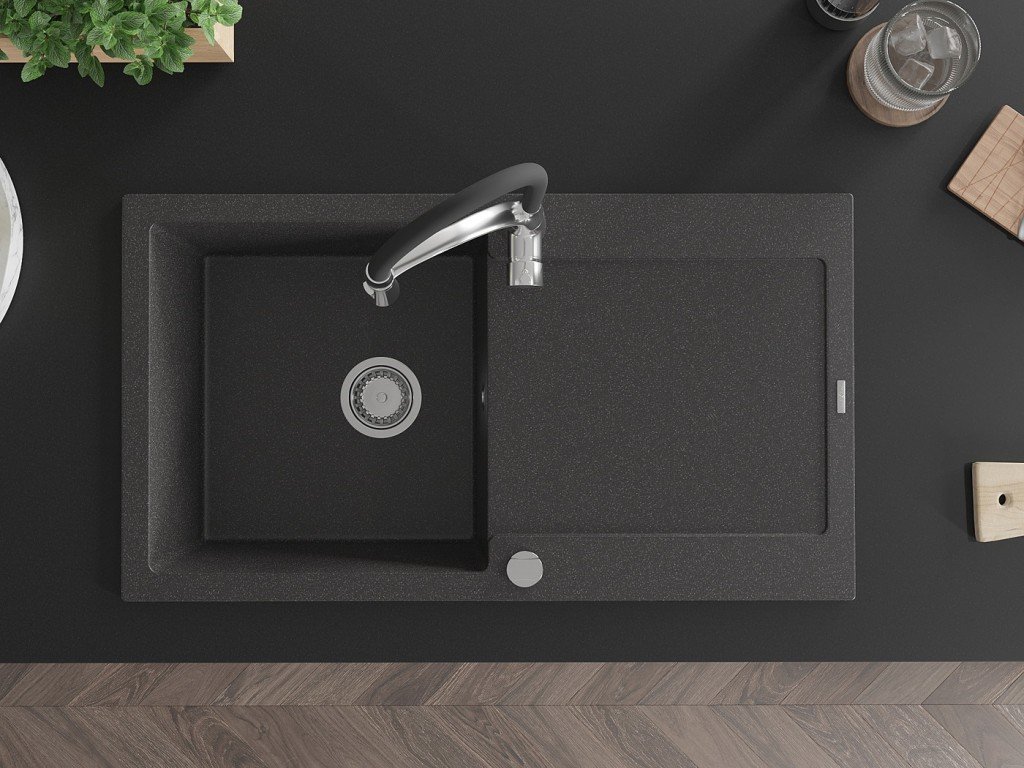 MEXEN/S - Leo granitový dřez 1 s odkapávačem včetně baterie Aster, černá kropenatá 6501-76-73450-07