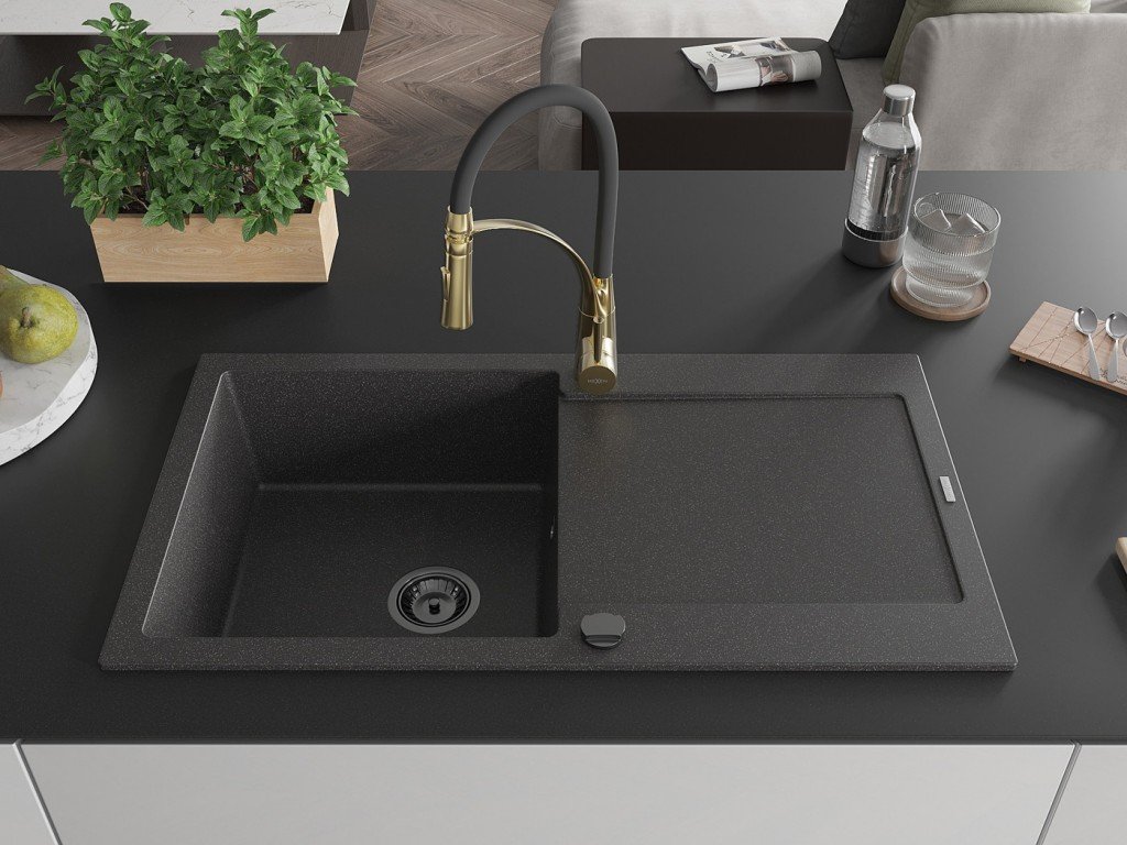 MAYA stojánková dřezová baterie se sprškou v elegantní černé matové barvě je ideální volbou pro vaši kuchyni. S klasickým designem a moderními funkcemi, tato baterie přináší...