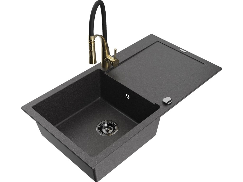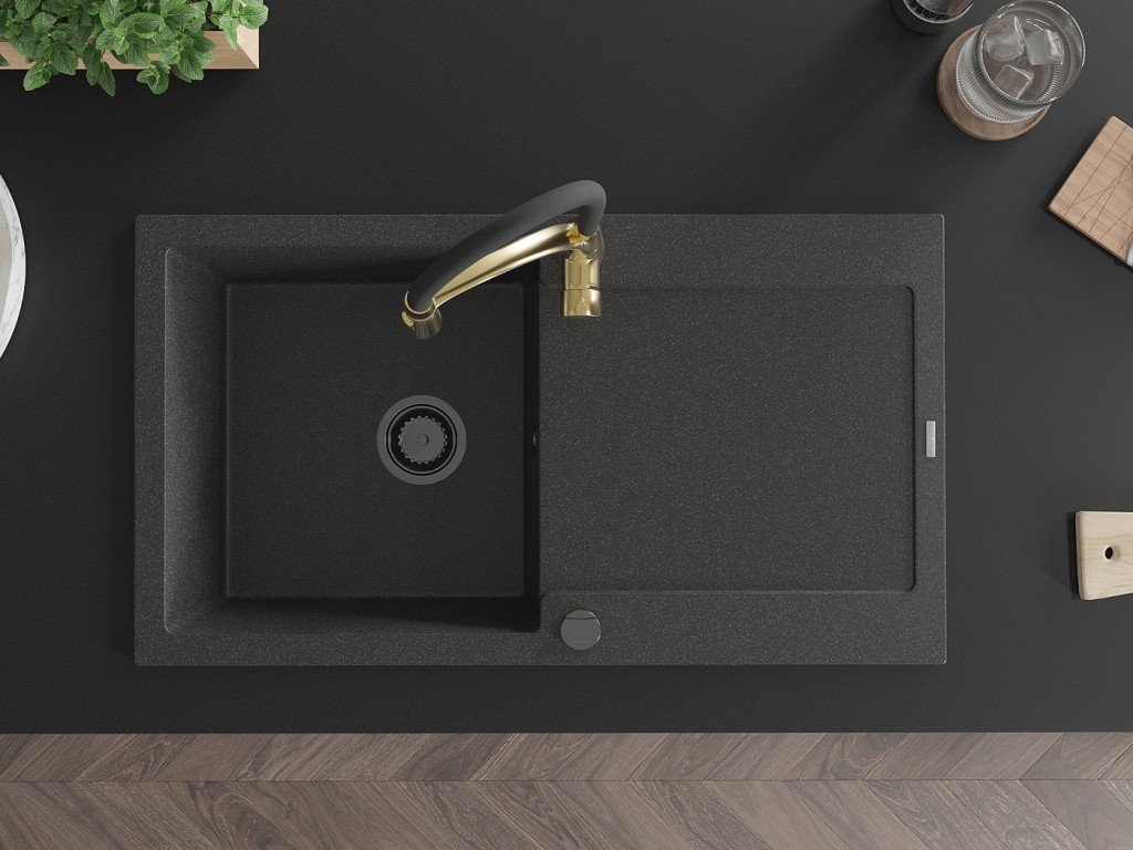 MEXEN/S - Leo granitový dřez 1 s odkapávačem včetně baterie Aster, černá kropenatá 6501-76-73450-57-B