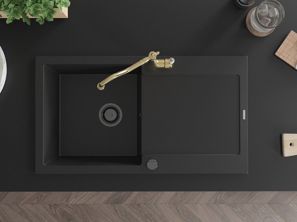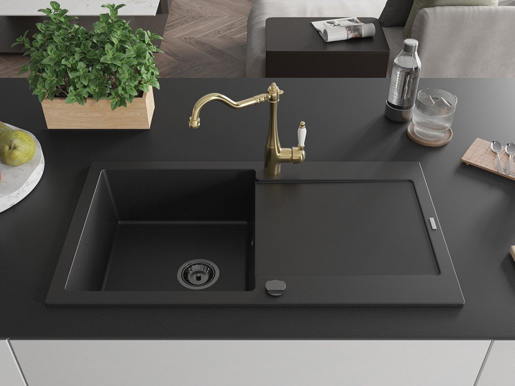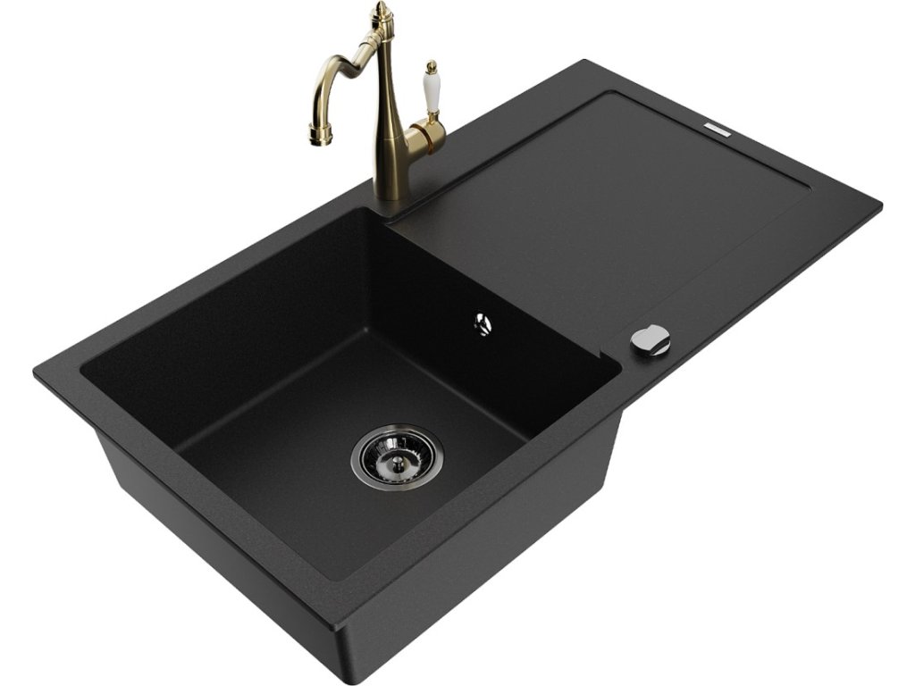 MEXEN/S - Leo granitový dřez 1 s odkapávačem včetně baterie Carla, černá 6501-77-670700-50-B