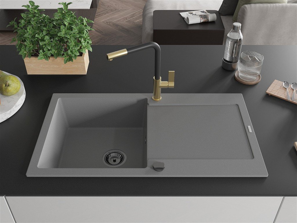 MEXEN/S – Leo je moderní granitový dřez s jednou misou a odkapávačem, který přináší dokonalou kombinaci elegance a funkcionality. Tento šedý dřez je vyroben z vysoce odolného...