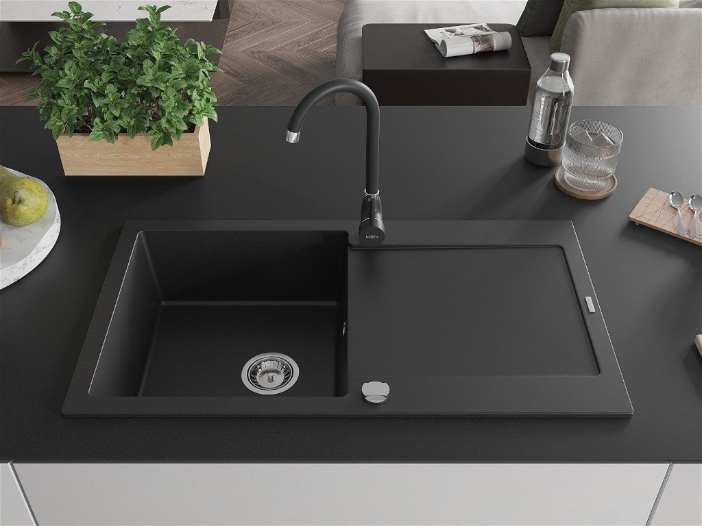 MEXEN/S - Leo granitový dřez 1 s odkapávačem včetně baterie Telma, černá 6501-77-670200-70