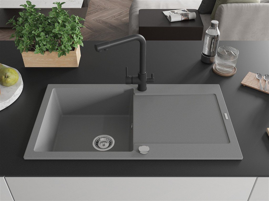 MEXEN/S - Bruno granitový dřez 1 s odkapávačem včetně baterie Elia, šedá je skvělou volbou pro každou moderní kuchyni. Díky kvalitnímu materiálu a preciznímu zpracování...