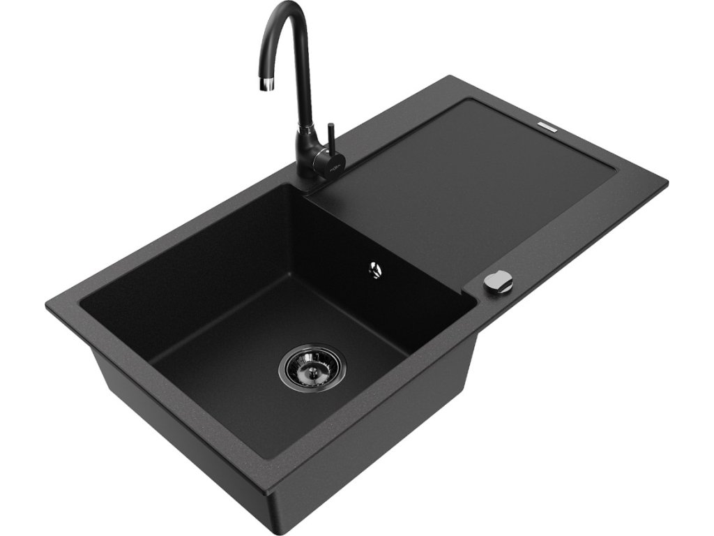 MEXEN/S - Leo granitový dřez s odkapávačem včetně baterie Telma, černá 6501-77-670200-70-B