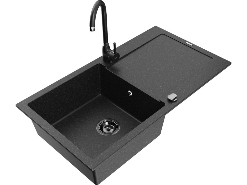 MEXEN/S - Leo granitový dřez s odkapávačem včetně baterie Telma, černá/stříbrná metalik 6501-73-670200-70-B