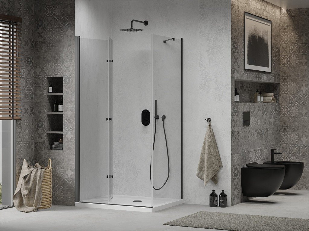 MEXEN/S - Lima sprchový kout 100x90, transparent, černá + bílá vanička se sifonem 856-100-090-70-00-4010B