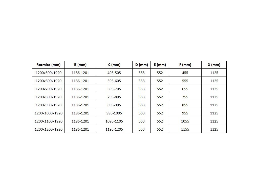 Rozměr: 120x70 cm (dveře 120 cm, stěna 70 cm)