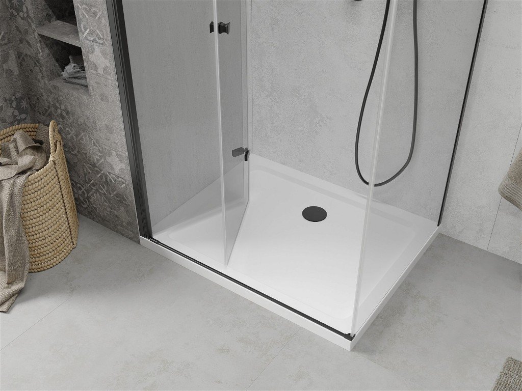 MEXEN/S - Lima sprchový kout 90x80, transparent, černá + bílá vanička se sifonem 856-090-080-70-00-4010B