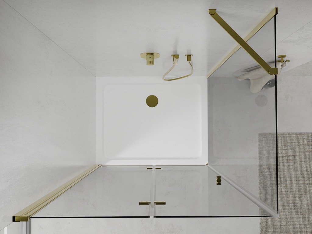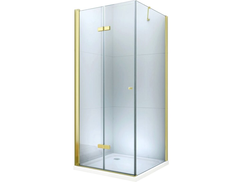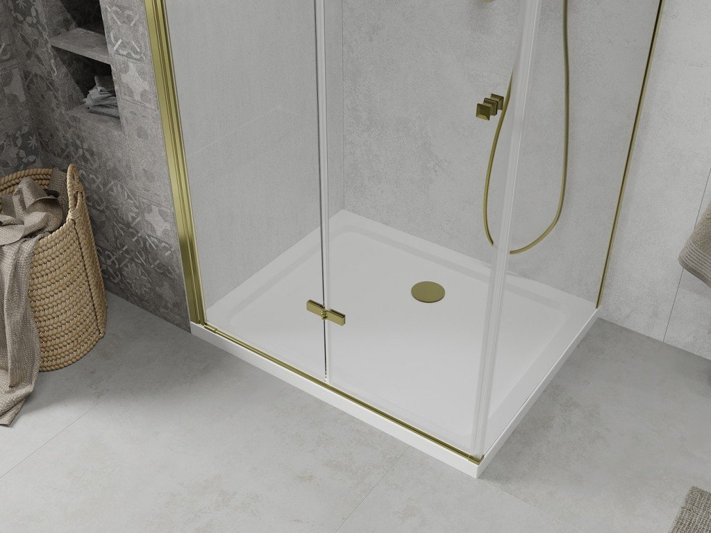 MEXEN/S - Lima sprchový kout zalamovací 90x100, sklo transparent, zlatá + vanička 856-090-100-50-00-4010
